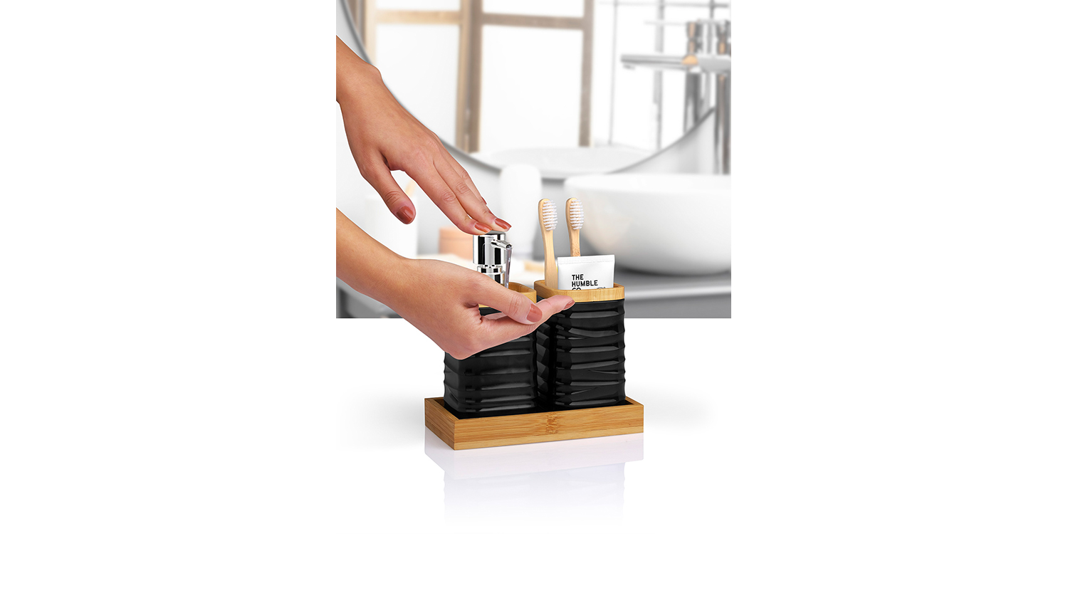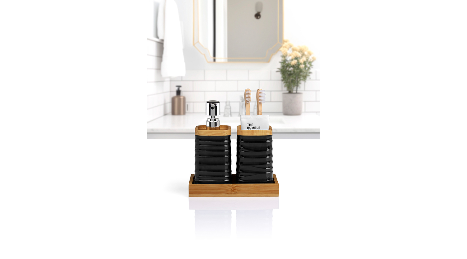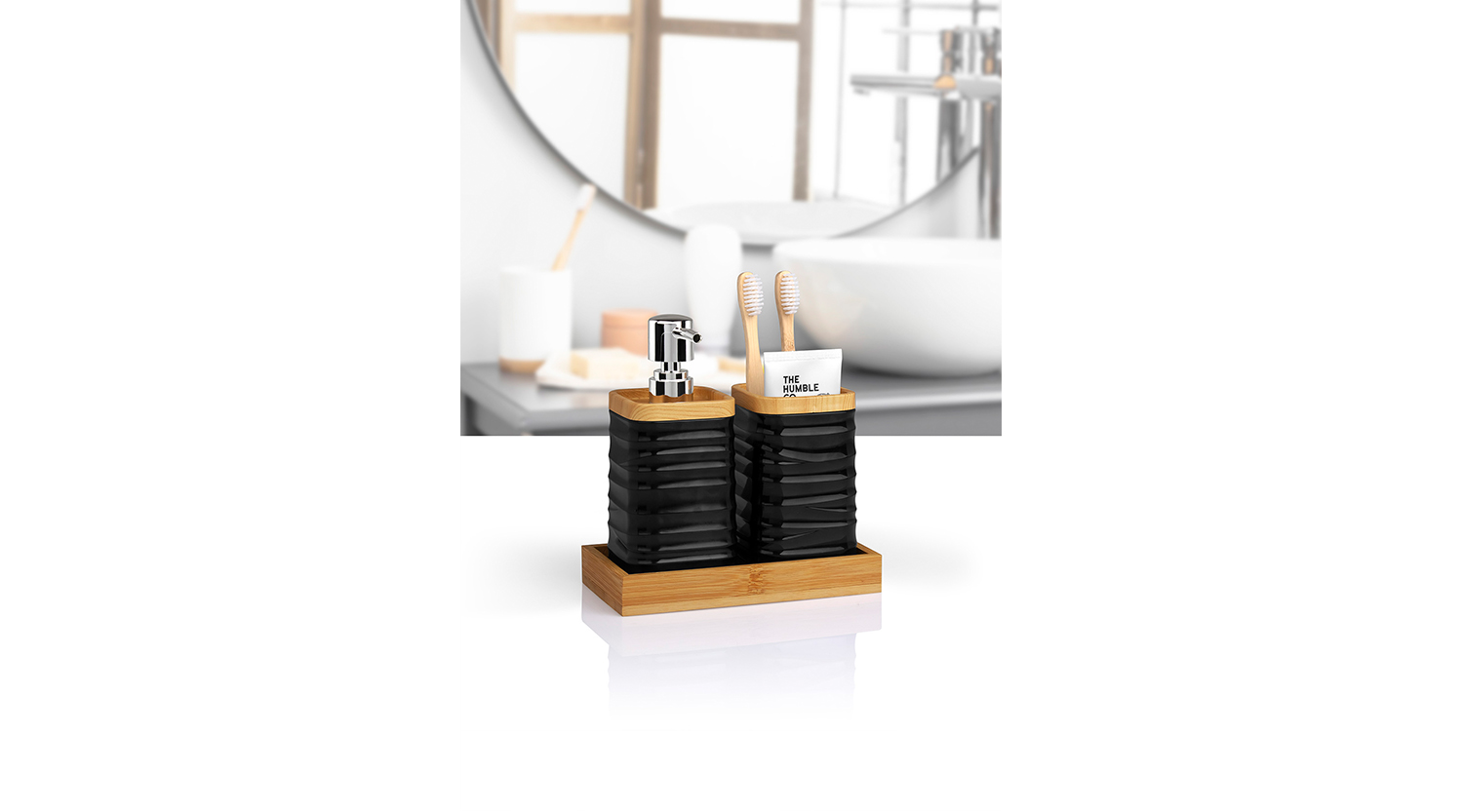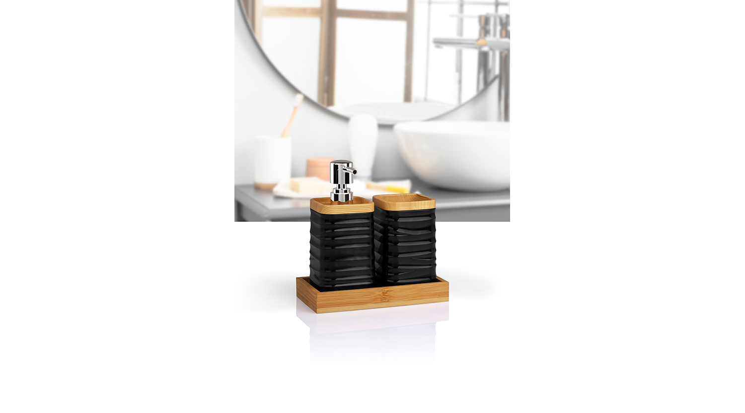 3 Pcs Bathroom Accessory Set with Bamboo Tray / black