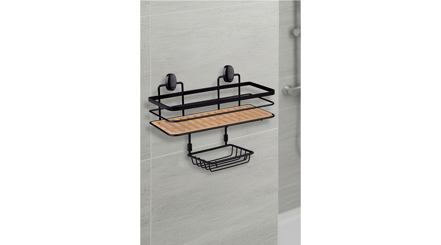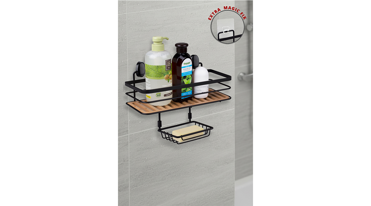 Due Eco Magic and Screw Fix Rectangle Maxi Shampoo Holder + Soap Holder 13X30 cm-Black