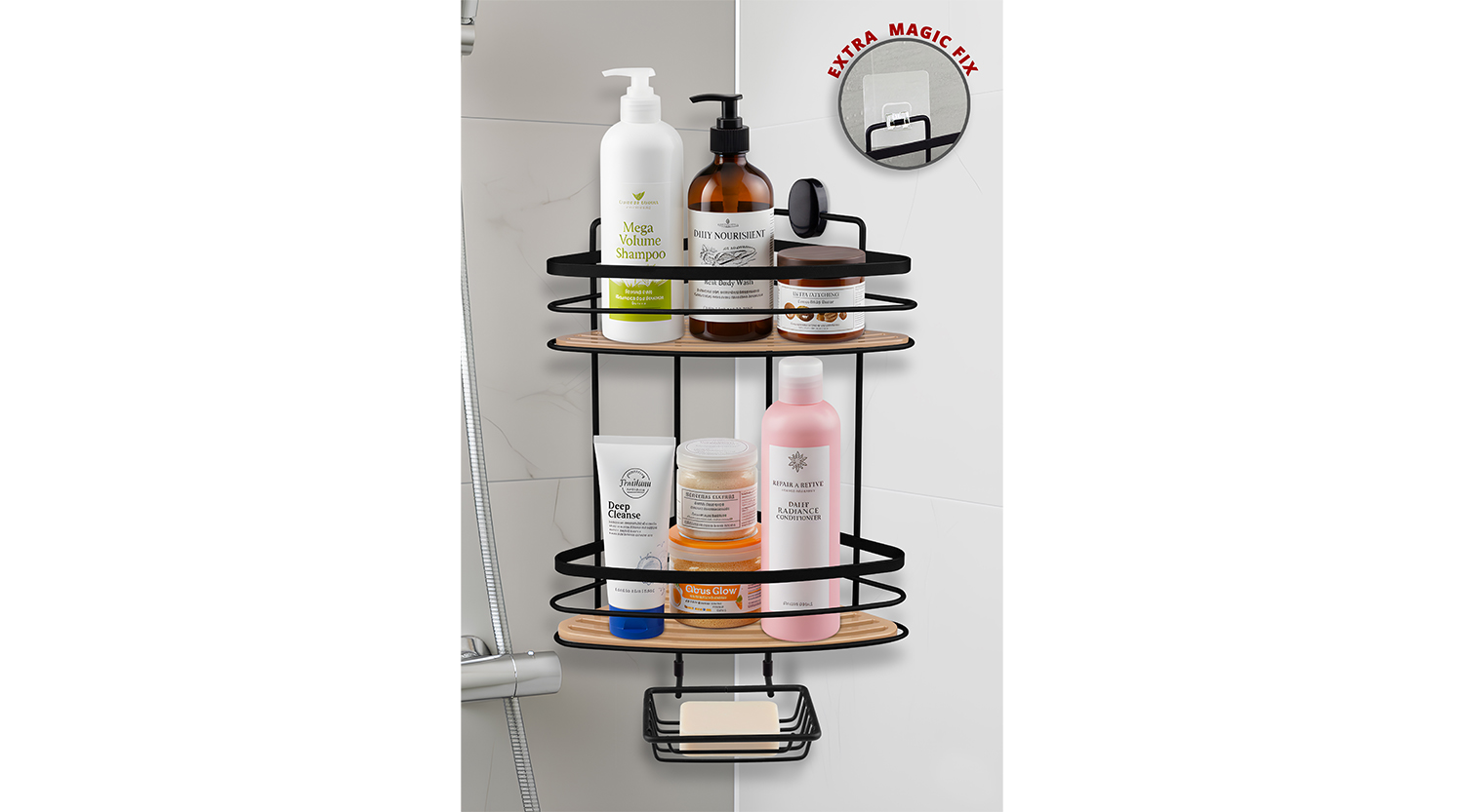 Due Eco Magic and Screw Fix Two Tier Shower Corner + Soap Holder 21 cm-Black