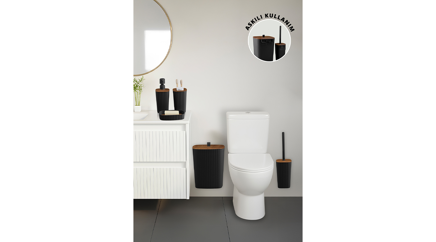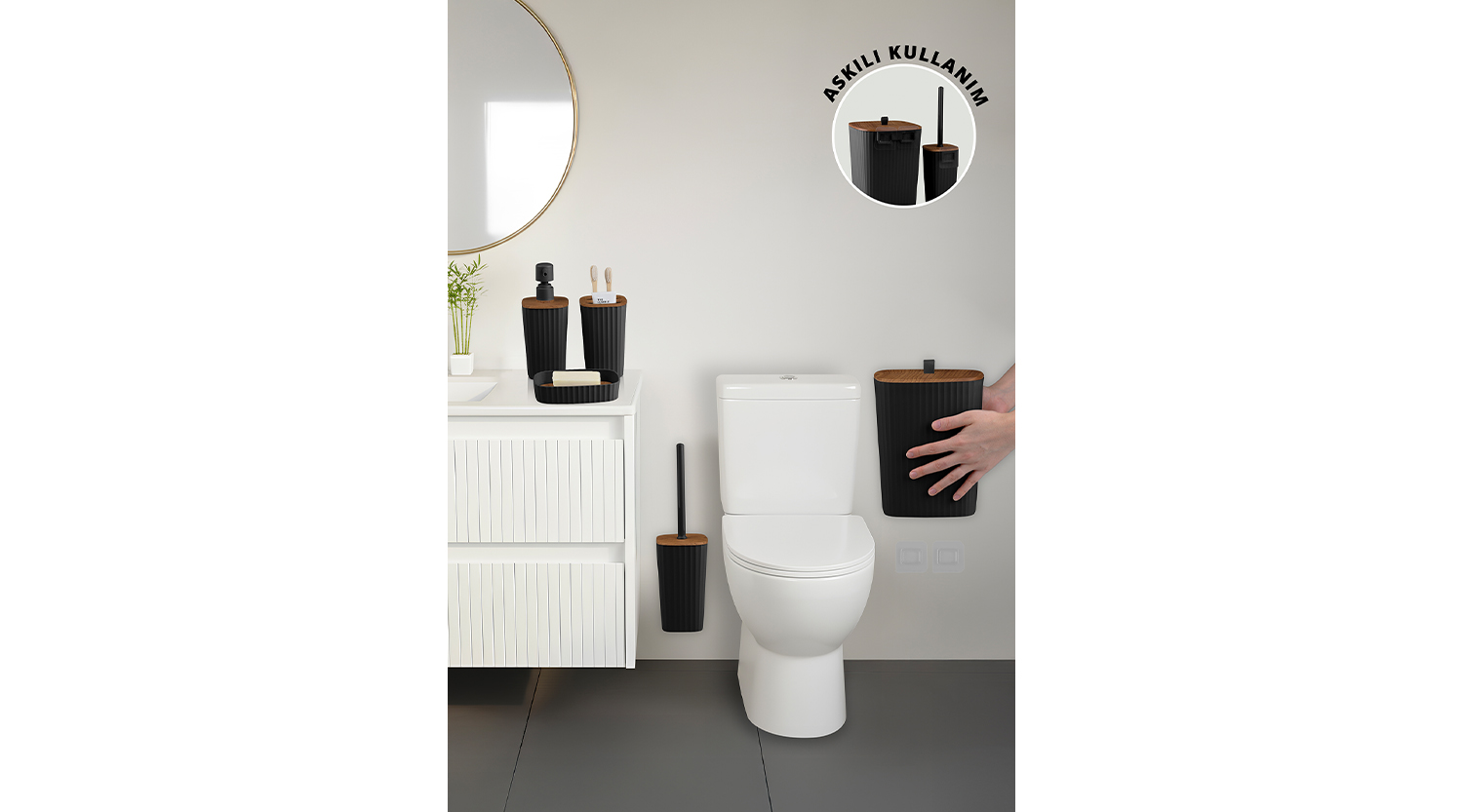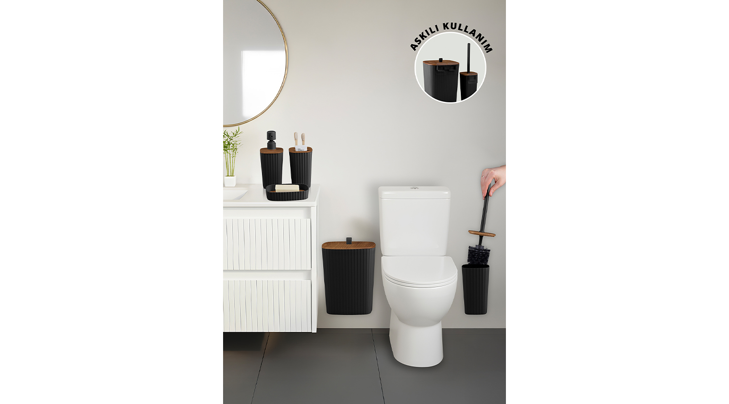Safir Bathroom Set (5 pcs) / Wooden / Black