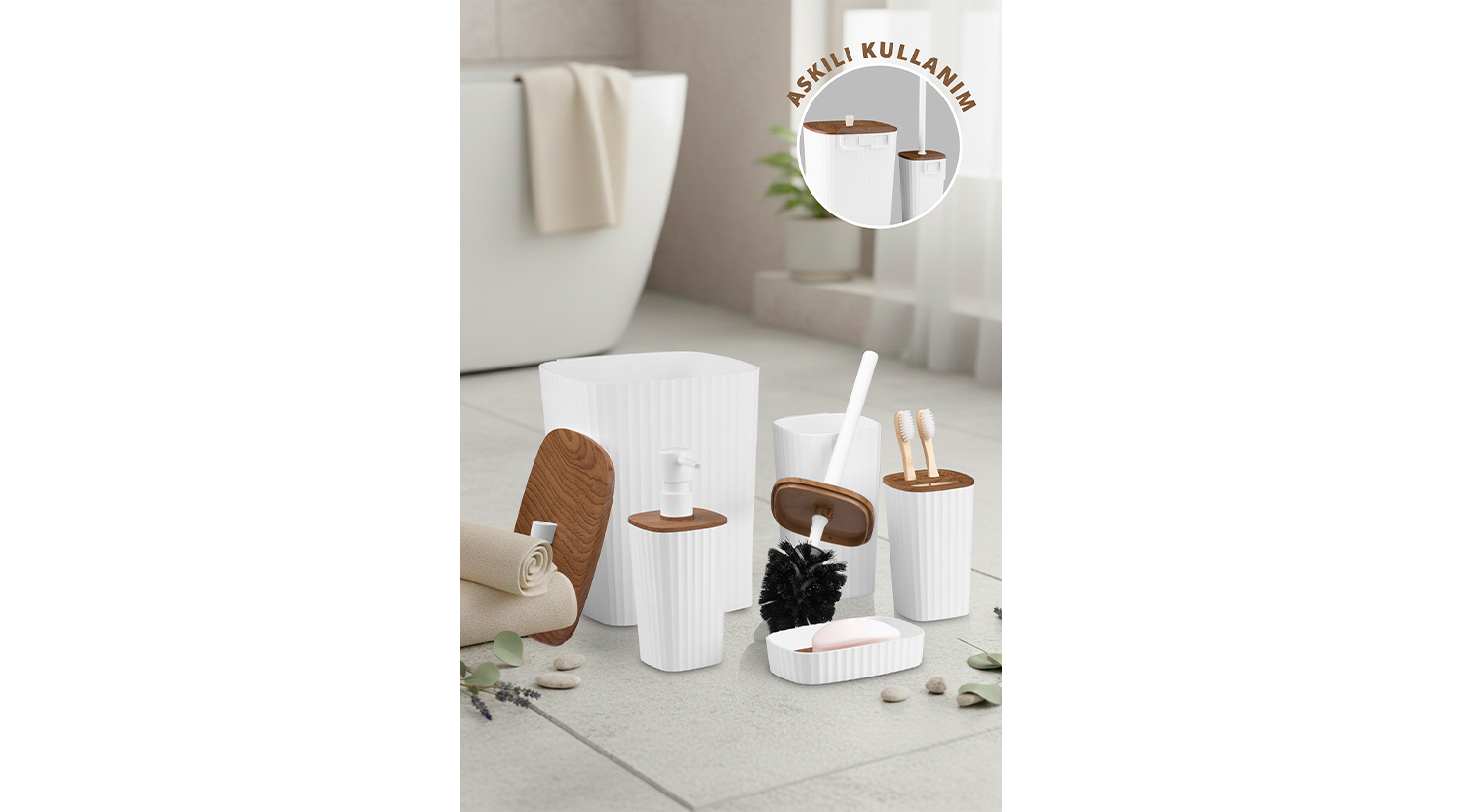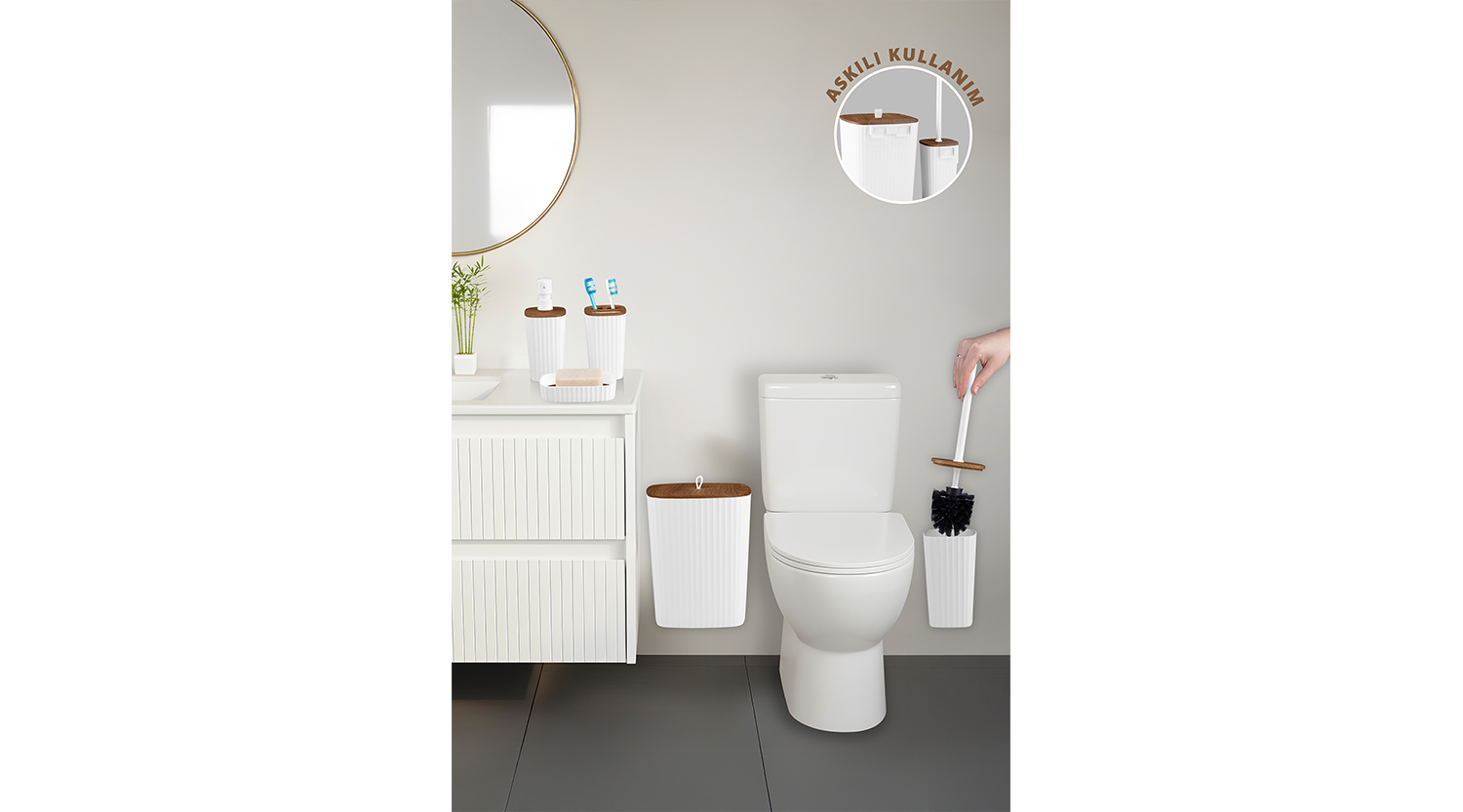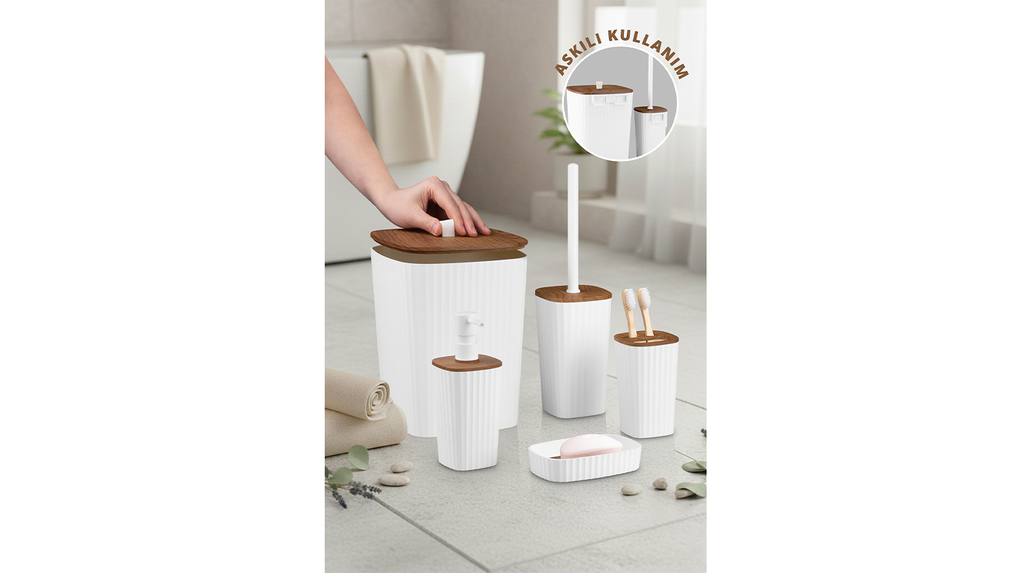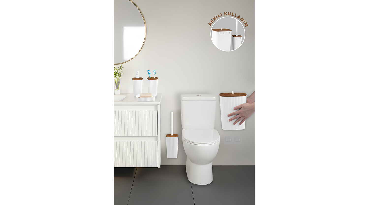 Safir Bathroom Set (5 pcs) / Wooden / White
