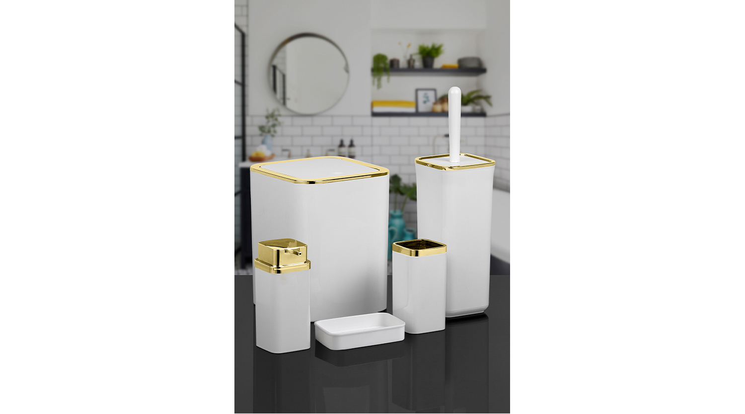 Square Bathroom Set (5 pcs) / Gold / White