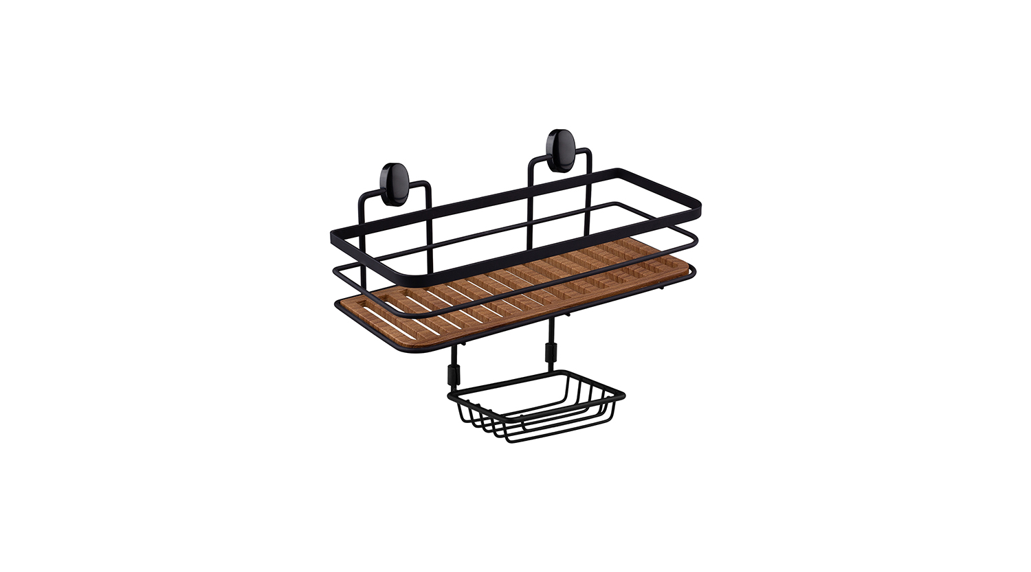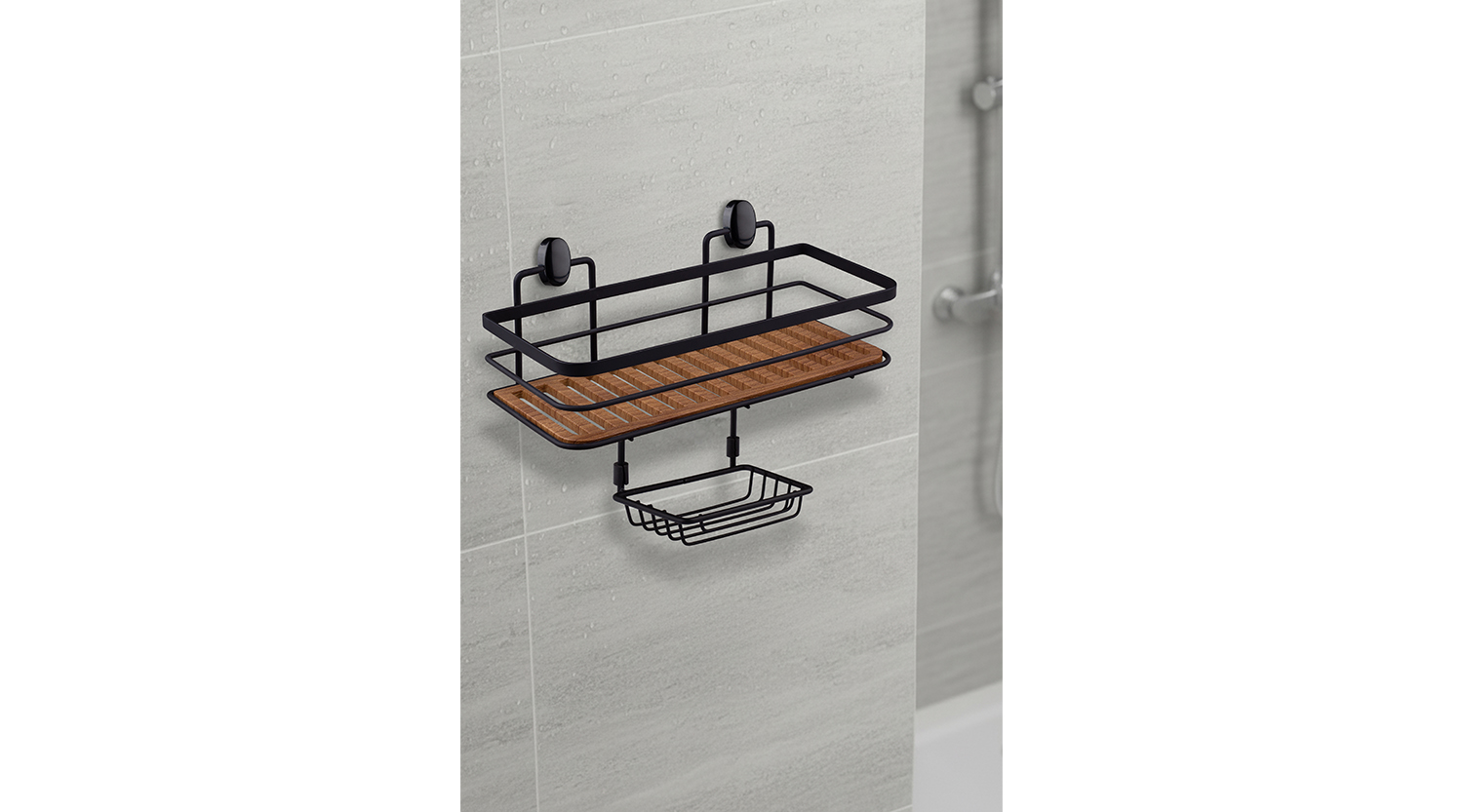 Wood Eco Magic and Screw Fix Rectangle Maxi Shampoo Holder + Soap Holder 13X30 cm-Black