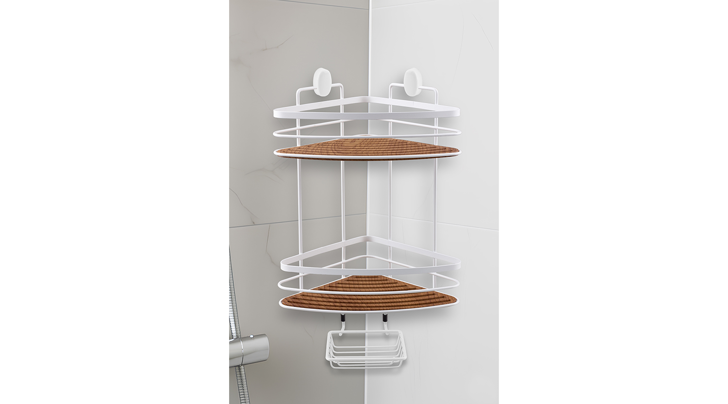 Wood Eco Magic and Screw Fix Two Tier Shower Corner + Soap Holder 21 cm-White
