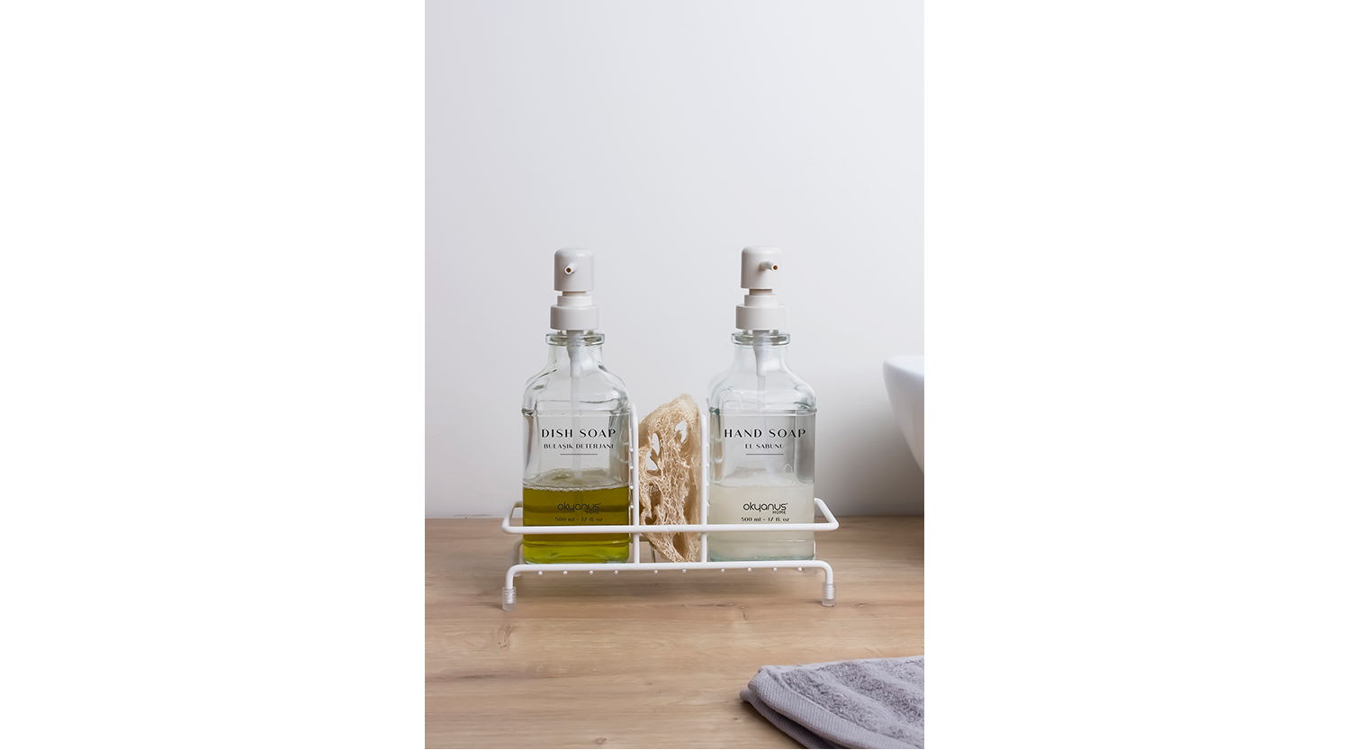 Stantlı Kare İkili Cam Sabunluk Seti / Beyaz